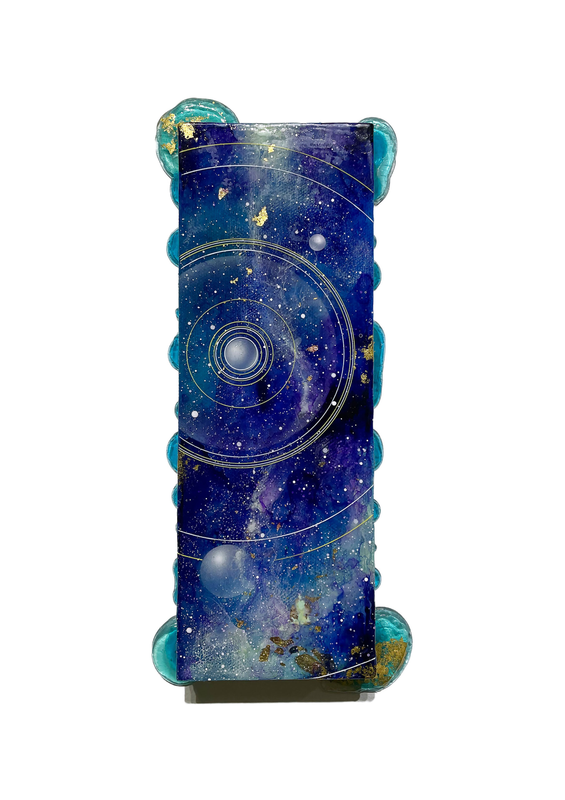 Resin, acrylic, wood panel, mixed media